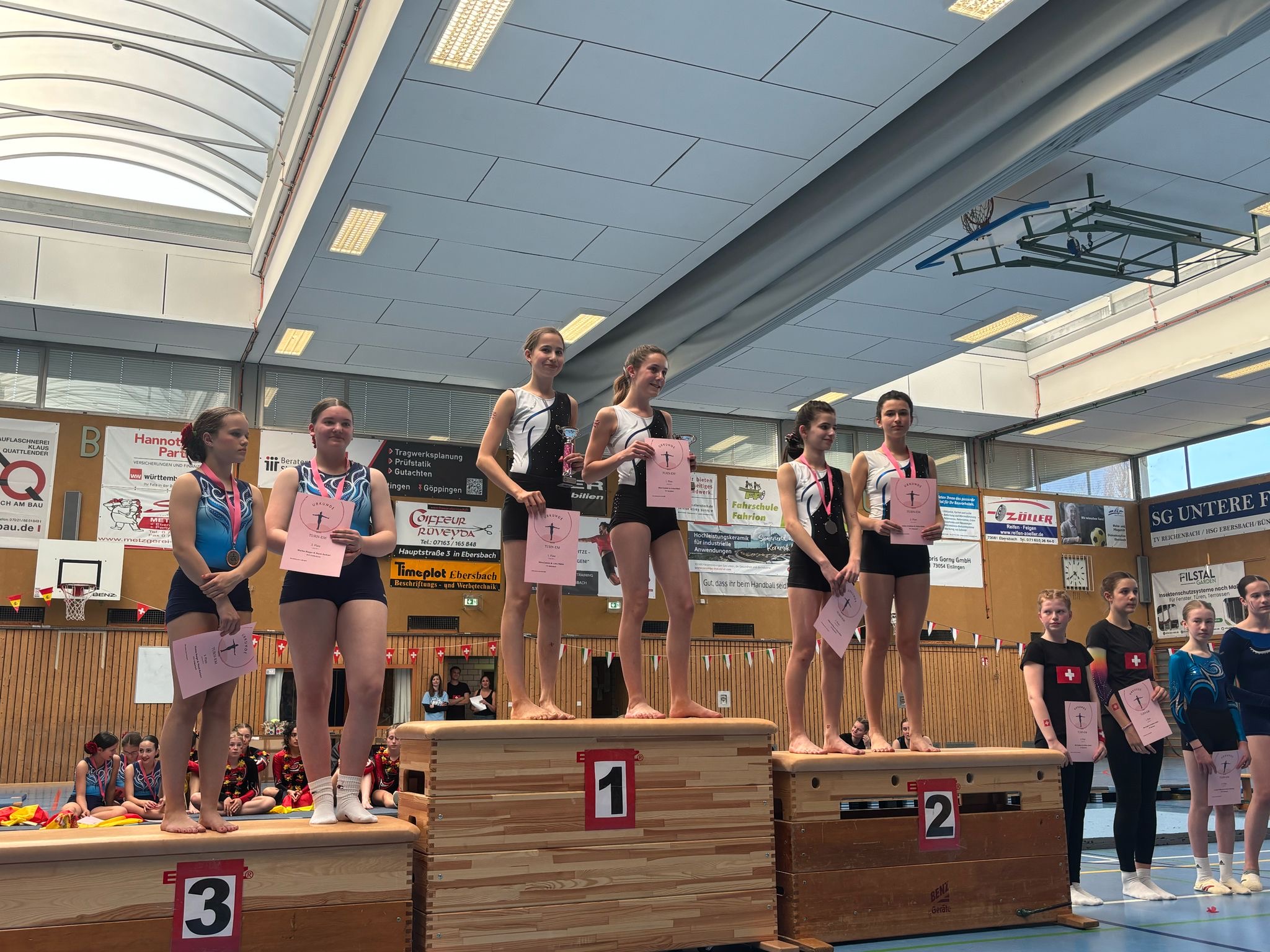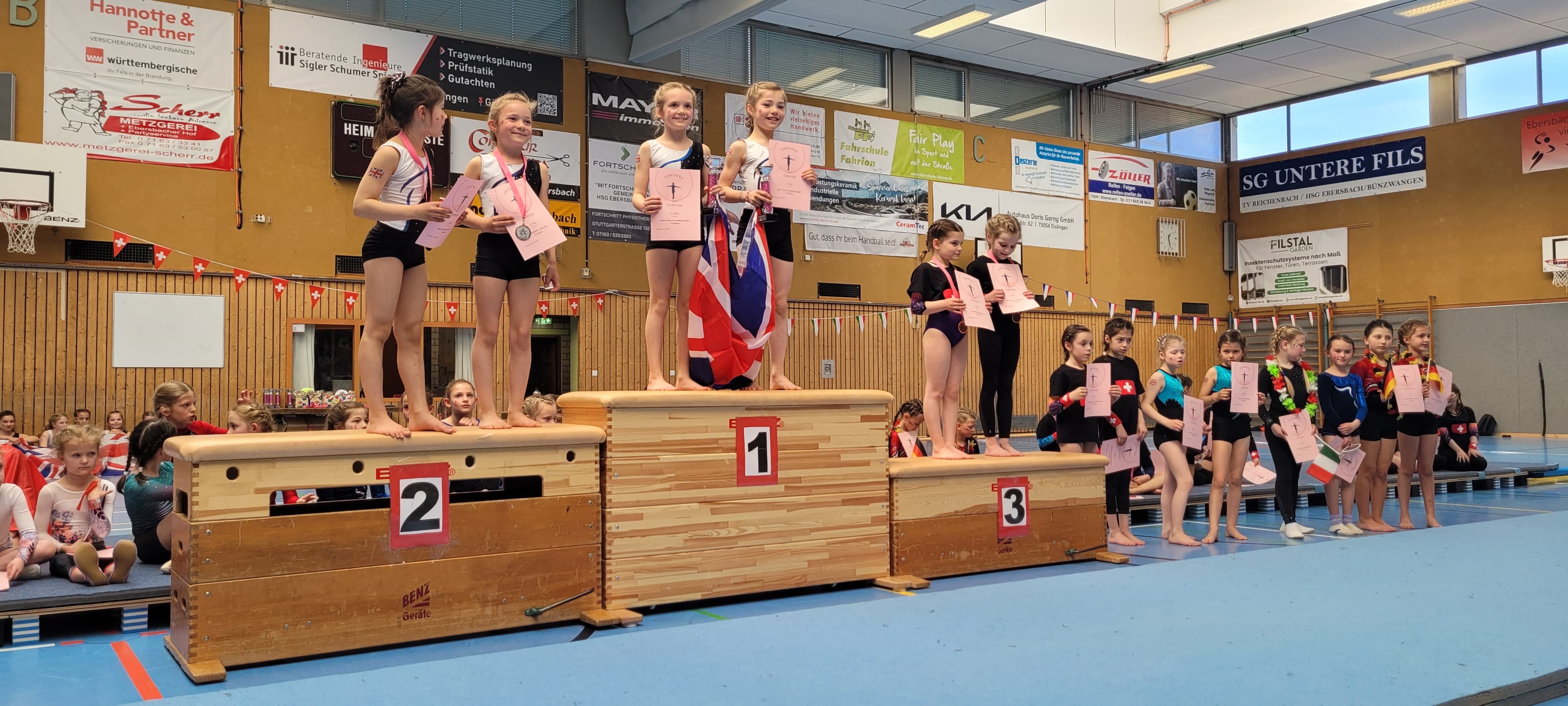 Auch im Jahrgang 2013 und jünger waren die Turnerinnen erfolgreich. Carla Nester und Elisa Fahr belegten einen soliden vierten Platz, Mathea Thoss und Sophia Melzer erturnten sich hier die Silbermedaille. In der nächsthöheren Altersklasse durften sich Matilda Pittermann und Pauline Fredel-Boll über den ersten Platz freuen.