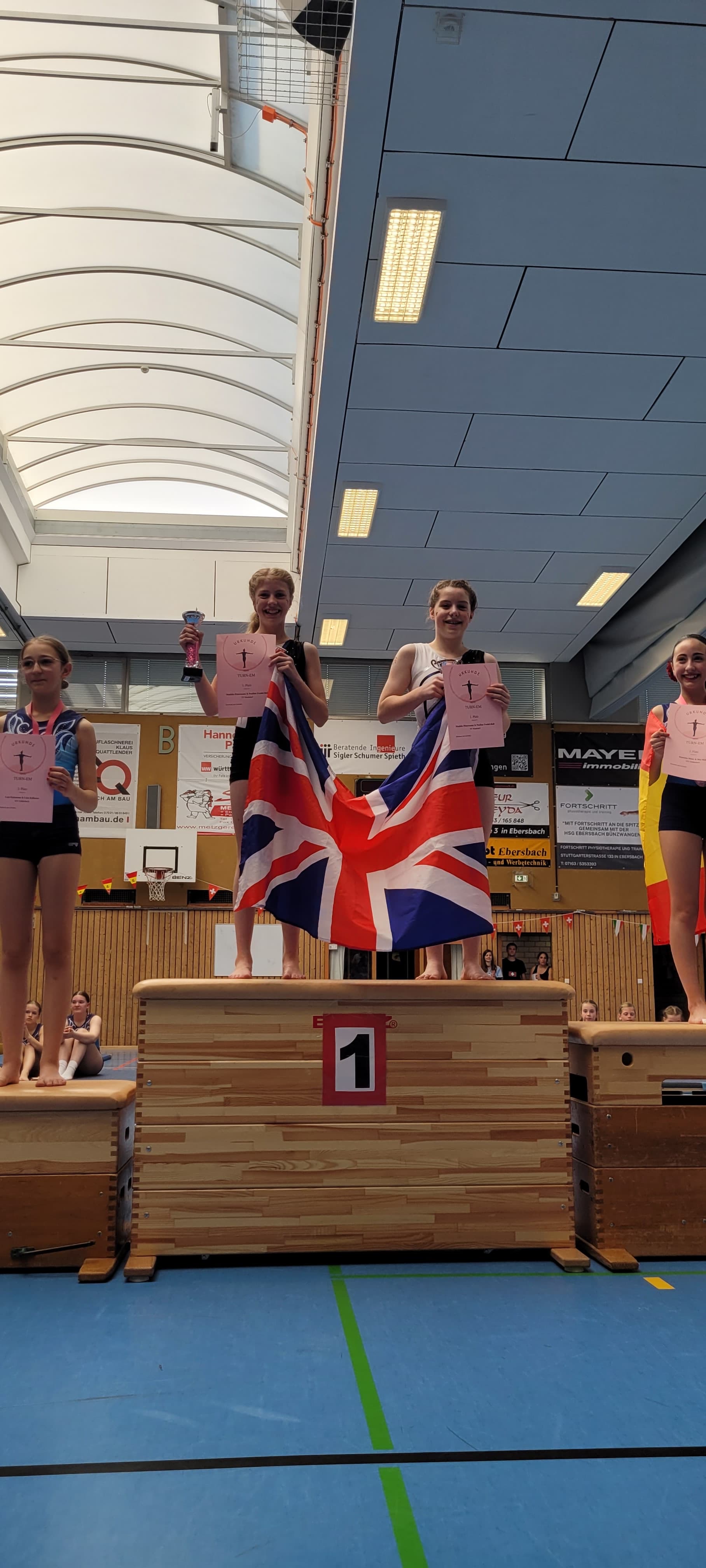Bei unseren ältesten Turnerinnen ging der Medaillenregen weiter: Zehra Bilda und Jolina Ardelean holten sich die Silbermedaille, während Lotta Mölch und Mira Gantert den Wettkampf mit einer Goldmedaille beendeten.