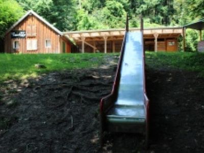 In der Hütte befinden sich eine Küche einschließlich Geschirr für ca. 30 Personen. Eine Kaffee-Padmaschine ist neben der normalen Kaffeemaschine vorhanden. Für die Kleinen gibt es auf dem Gelände eine Rutsche, für die Größeren befindet unterhalb der Hütte ein Bolzplatz.